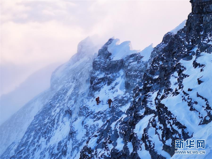 5月27日,2020珠峰高程測(cè)量登山隊(duì)從海拔8300米的突擊營(yíng)地出發(fā)。新華社特約記者扎西次仁攝