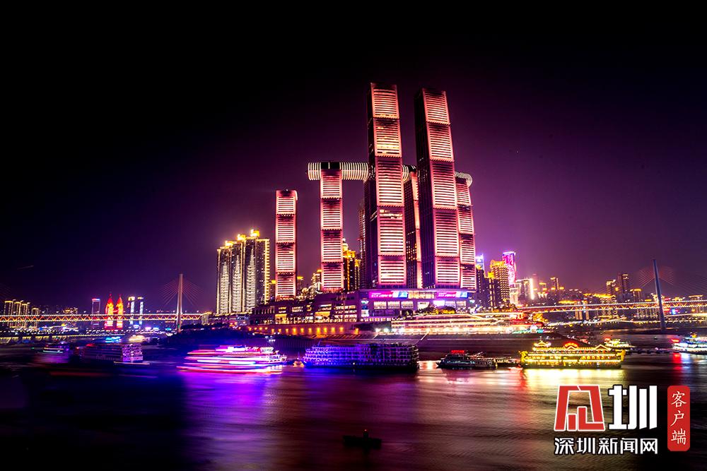 圖為夜色中重慶朝天門來(lái)福士廣場(chǎng)。