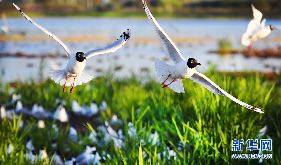 5月28日在陜西省神木市紅堿淖拍攝的遺鷗。陜西省神木市紅堿淖是中國最大的沙漠淡水湖,近年來隨著周邊生態(tài)環(huán)境改善,紅堿淖水位逐年提升,水域面積不斷擴大,每年四至八月,都會吸引大批遺鷗來此繁衍棲息,已成為遺鷗繁殖的重要基地。新華社記者陶明攝