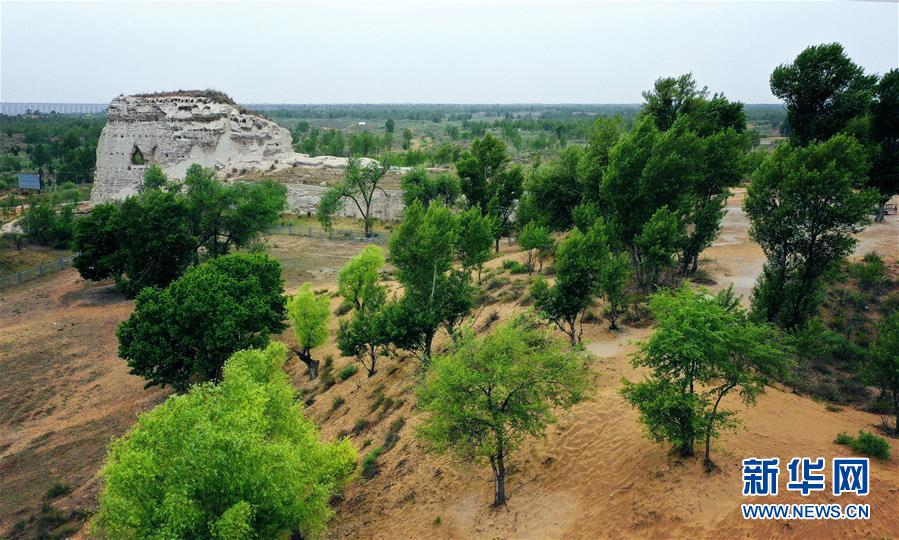 統(tǒng)萬(wàn)城北接浩瀚的毛烏素沙漠,千余年來(lái),隨著惡劣生態(tài)環(huán)境的影響,曾經(jīng)的城池遺存遭到風(fēng)雨流沙侵蝕,一度掩埋于沙漠之下。如今,隨著當(dāng)?shù)貛状舜罅χ紊?,生態(tài)環(huán)境得以明顯改善,統(tǒng)萬(wàn)城遺址也隨之變成綠意盎然的“大漠名勝”。
