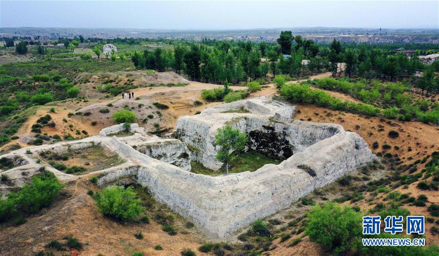 統(tǒng)萬(wàn)城西門(mén)及甕城遺址(5月30日攝,無(wú)人機(jī)照片)。新華社記者劉瀟攝