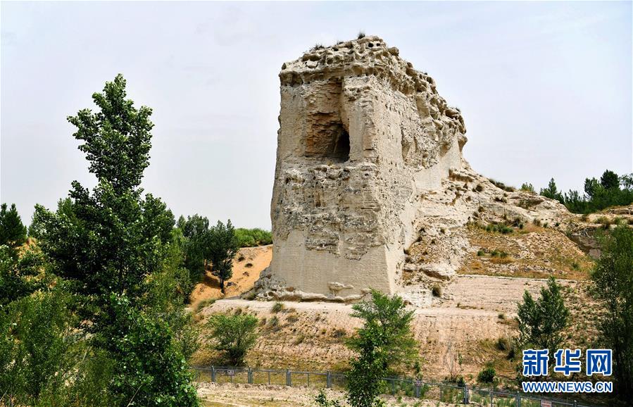 統(tǒng)萬(wàn)城西南角城臺(tái)遺址(5月30日攝)。新華社記者劉瀟攝