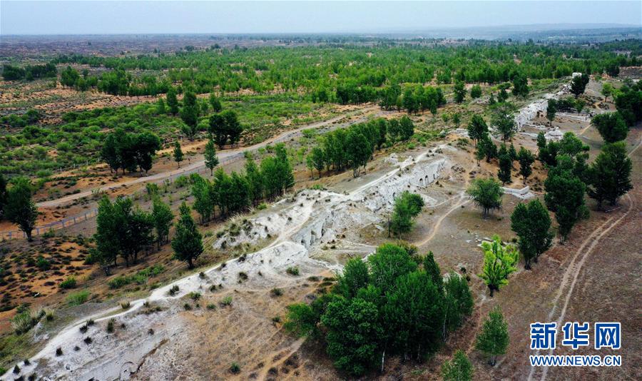 統(tǒng)萬(wàn)城北城墻遺址(5月30日攝,無(wú)人機(jī)照片)。新華社記者劉瀟攝