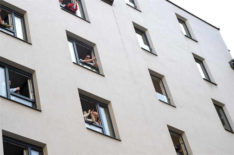 5月30日,在奧地利維也納“時(shí)代精神”酒店內(nèi),人們?cè)诜块g窗口欣賞歌劇演出。當(dāng)日,奧地利首都維也納的一家名為“時(shí)代精神”的酒店為迎接“解封”后恢復(fù)營業(yè),在其庭院內(nèi)舉辦“窗口音樂會(huì)”。按照奧政府此前公布的“解封”時(shí)間表,從29日起,賓館酒店以及健身房、游泳池和游樂場(chǎng)等休閑娛樂場(chǎng)所有條件恢復(fù)運(yùn)營。新華社記者郭晨攝