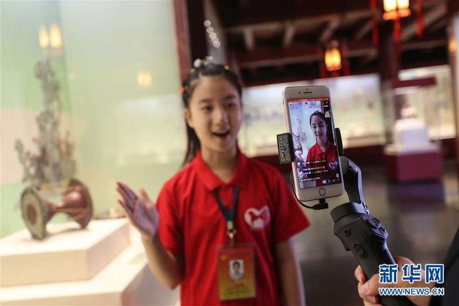 6月1日,小志愿者于冰清在沈陽故宮博物館內(nèi)通過直播向觀眾講解“古趣童心——清宮文物中的兒童世界”展覽。當(dāng)日是“六一”國際兒童節(jié),沈陽故宮博物館的小志愿者利用網(wǎng)絡(luò)直播的形式,帶領(lǐng)小朋友“云”逛沈陽故宮博物館,并向小朋友們詳細(xì)講解正在館內(nèi)展出的“古趣童心——清宮文物中的兒童世界”展覽。新華社記者潘昱龍攝。