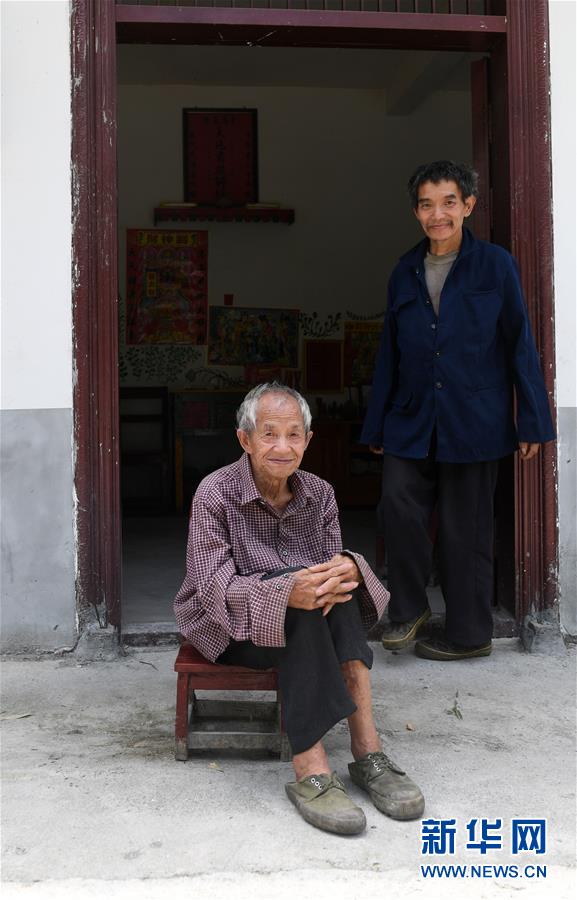 在廣西環(huán)江毛南族自治縣下南鄉(xiāng)下塘村上眉屯,譚廣田(右)和父親譚運(yùn)日在家門(mén)口(5月23日攝)。新華社記者陸波岸攝。