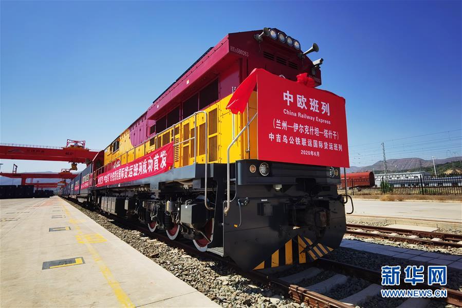 這是6月5日在甘肅蘭州國(guó)際陸港拍攝的準(zhǔn)備發(fā)車的“中吉烏”公鐵聯(lián)運(yùn)國(guó)際貨運(yùn)班列。新華社記者范培珅攝。