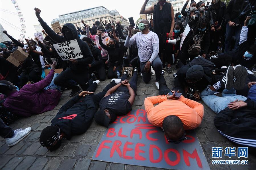 6月7日,民眾在比利時布魯塞爾市中心的司法宮附近參加示威活動。比利時民眾當日在布魯塞爾市中心的司法宮附近舉行示威活動,抗議美國明尼阿波利斯市警察暴力執(zhí)法致非裔男子喬治·弗洛伊德死亡。新華社記者鄭煥松攝