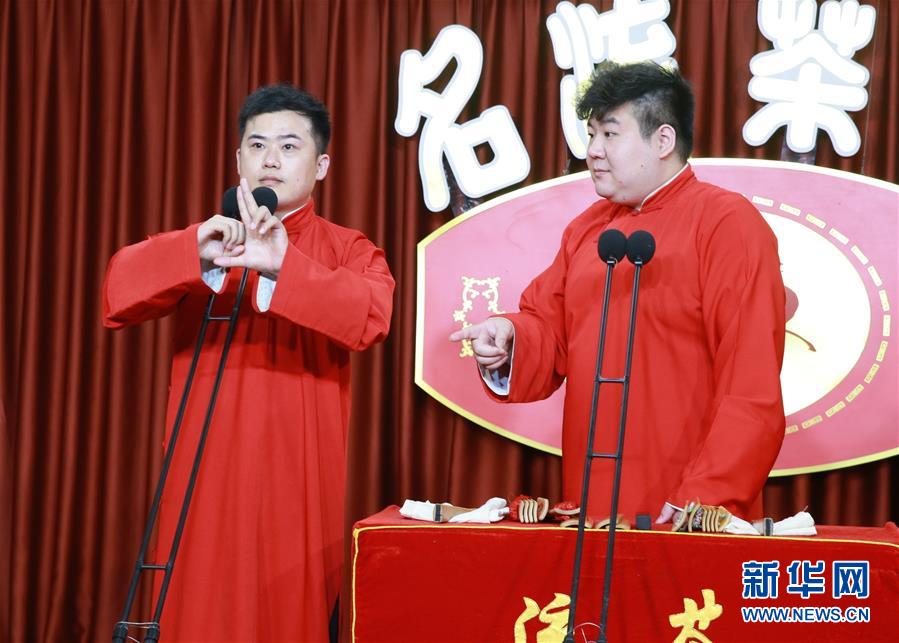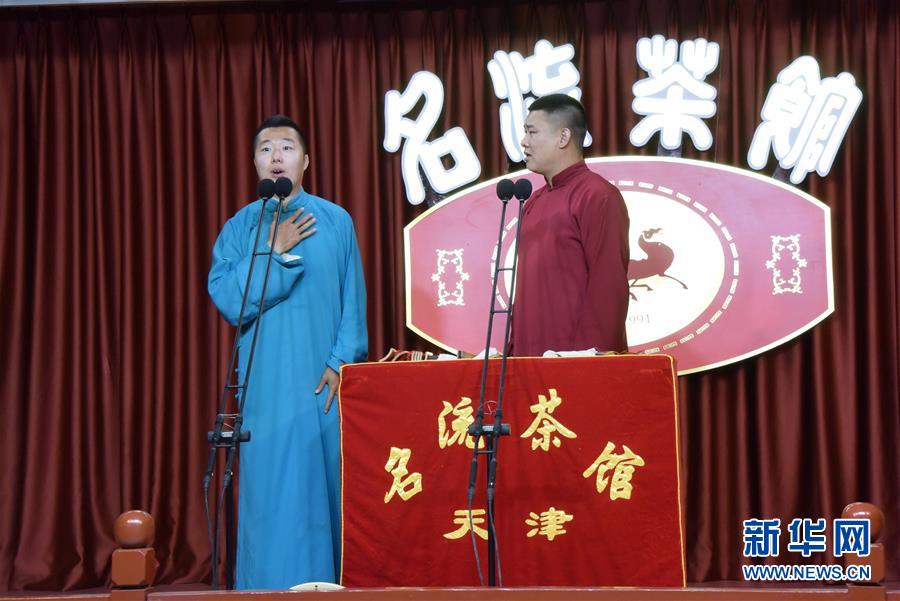 6月6日晚,天津名流茶館的相聲演員在付費(fèi)直播《名流名家“逗你玩”》演出中說相聲。隨著疫情防控形勢(shì)逐漸向好,天津的一些茶館紛紛轉(zhuǎn)戰(zhàn)“云端”說相聲,推出付費(fèi)直播演出,并邀請(qǐng)一些幸運(yùn)觀眾到現(xiàn)場(chǎng)觀看,在傳播津味相聲、培養(yǎng)年輕觀眾的同時(shí),也為即將到來的線下演出“預(yù)熱”。新華社記者周潤健攝