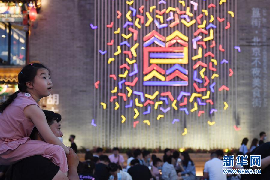 6月6日傍晚時(shí)分,一位小朋友和家長在簋街排隊(duì)等候就餐。6月6日晚,北京79個(gè)地標(biāo)、商圈、特色街區(qū)同時(shí)點(diǎn)亮夜京城,營造消費(fèi)氛圍,北京“夜經(jīng)濟(jì)”也加速回暖。新華社記者鞠煥宗攝