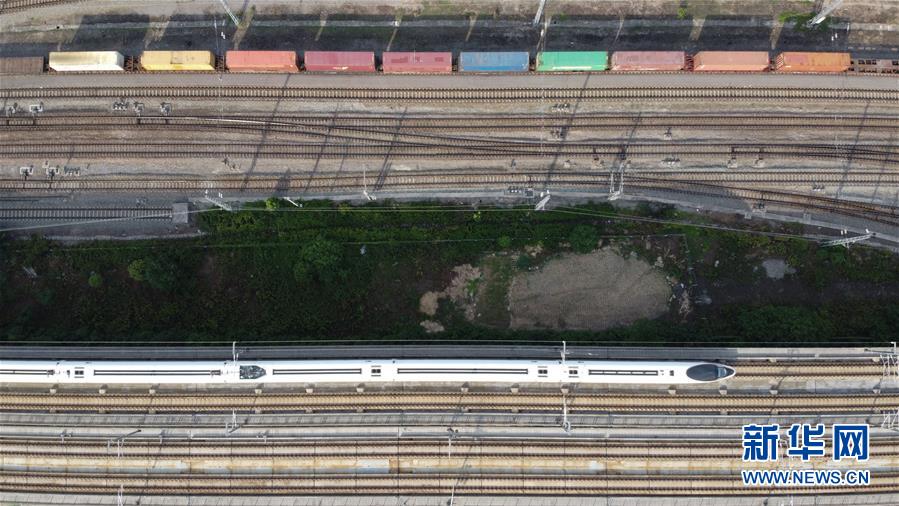 6月6日,合肥首開至荷蘭蒂爾堡的中歐班列(上)準備從合肥北站物流基地駛出(無人機照片)。當日,搭載82個標準集裝箱的中歐班列從中國鐵路上海局集團有限公司合肥貨運中心合肥北站物流基地駛出發(fā)往荷蘭蒂爾堡,標志著合肥中歐班列通往荷蘭蒂爾堡的線路正式開通。新華社記者張端攝