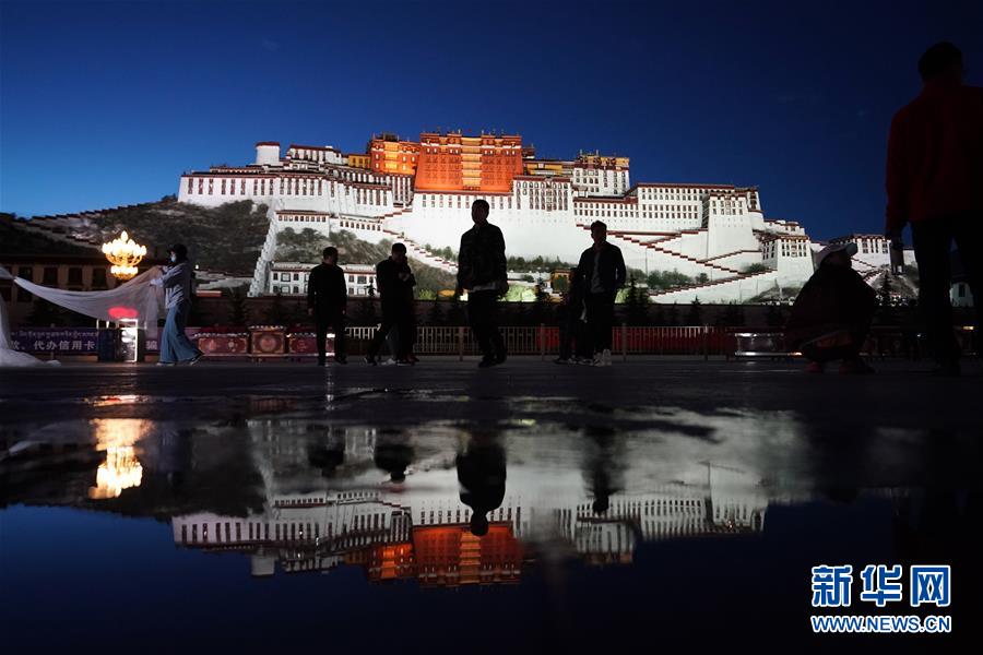游客在布達拉宮廣場游覽(6月8日攝)。夜幕降臨,西藏拉薩布達拉宮燈光璀璨,夜景迷人。新華社記者詹彥攝