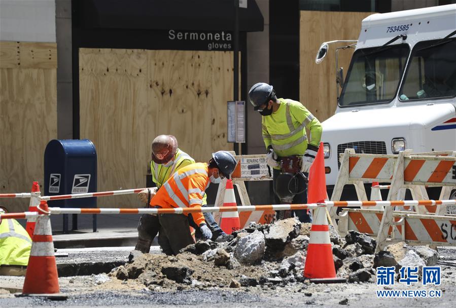 6月8日,工人在美國紐約的一處工地忙碌。在因新冠疫情進(jìn)入“居家令”近三個月之后,美國紐約市于當(dāng)?shù)貢r間8日開始“解封”,進(jìn)入經(jīng)濟(jì)重啟的第一階段。新華社記者王迎攝