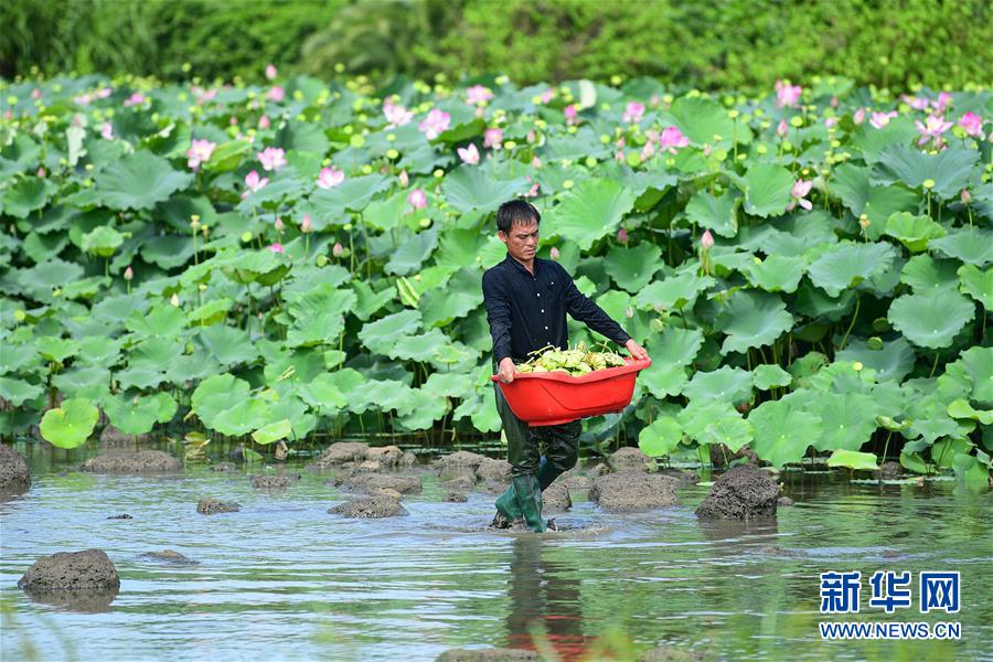 6月9日,村民在海口龍華區(qū)龍泉鎮(zhèn)美仁坡村采摘蓮蓬。初夏時(shí)節(jié),位于海南海口龍華區(qū)龍泉鎮(zhèn)的蓮蓬逐漸成熟,當(dāng)?shù)卮迕窦泳o采摘,一派繁忙景象。新華社記者蒲曉旭攝