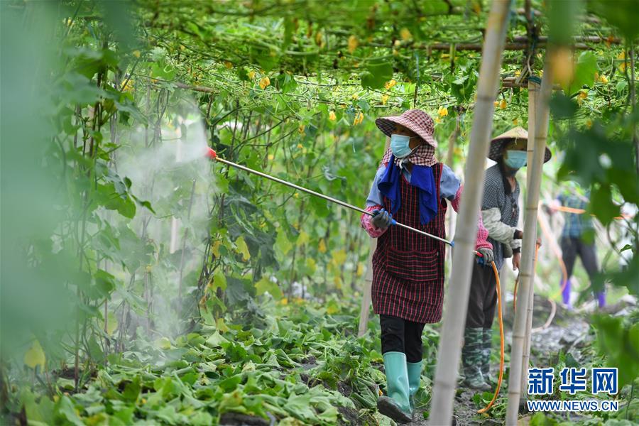 6月9日,在江華瑤族自治縣濤圩鎮(zhèn)鳳尾村蔬菜基地,農(nóng)戶對(duì)農(nóng)作物進(jìn)行噴灑消毒。近日,受連續(xù)強(qiáng)降雨影響,湖南省永州市江華瑤族自治縣遭遇洪澇災(zāi)害,部分農(nóng)田受災(zāi)。目前,江華瑤族自治縣洪水已退,群眾在當(dāng)?shù)叵嚓P(guān)部門引導(dǎo)下積極開展生產(chǎn)自救。新華社記者陳澤國攝