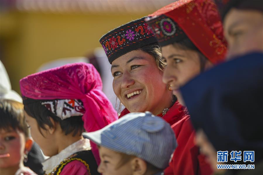 村民在熱斯喀木村觀看新疆塔什庫爾干塔吉克自治縣文工團(tuán)的演出(6月6日攝)。新華社記者胡虎虎攝