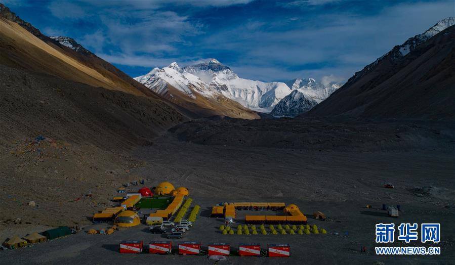 這是珠穆朗瑪峰(無人機(jī)照片,5月25日攝)。從空中俯瞰珠穆朗瑪峰北坡,生機(jī)勃勃的高原濕地、蜿蜒曲折的盤山公路、壯麗秀美的絨布冰川,還有安靜的村莊和熱鬧的登山營(yíng)地,共同構(gòu)成一幅壯美畫卷。新華社記者普布扎西攝