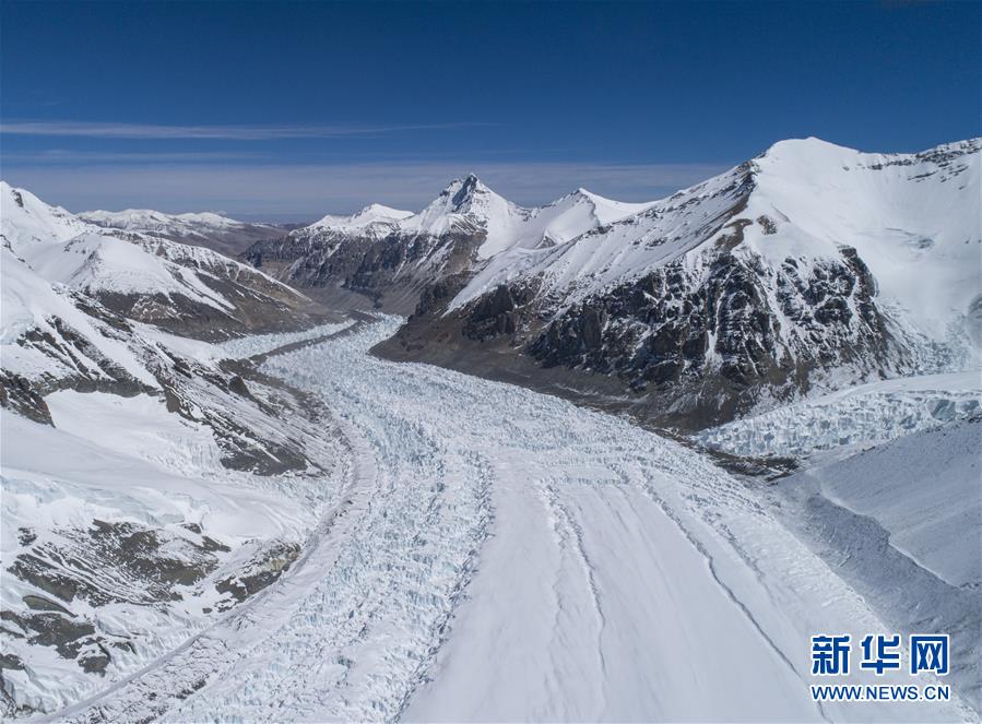 這是珠峰腳下的絨布冰川(無人機(jī)照片,5月10日攝)。從空中俯瞰珠穆朗瑪峰北坡,生機(jī)勃勃的高原濕地、蜿蜒曲折的盤山公路、壯麗秀美的絨布冰川,還有安靜的村莊和熱鬧的登山營(yíng)地,共同構(gòu)成一幅壯美畫卷。新華社記者孫非攝