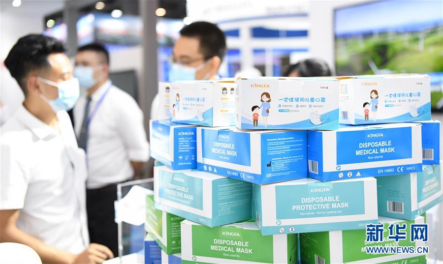 6月10日拍攝的展會上的口罩生產(chǎn)商展位。當日,廣州國際防疫物資展覽會在保利世貿(mào)博覽館舉行。本次展會面積共計3.6萬平方米,設(shè)有防疫產(chǎn)品、設(shè)備、綜合服務(wù)、原輔料等4個展區(qū),參展企業(yè)約600家。新華社記者鄧華攝