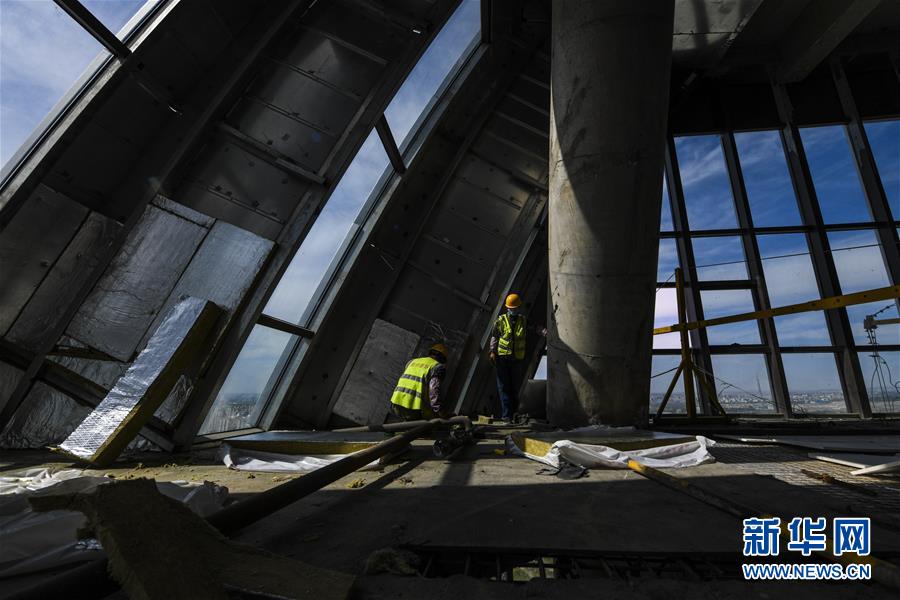 6月16日,工人在新疆烏魯木齊奧林匹克體育中心運動員賓館內(nèi)施工。新華社記者 王菲 攝
