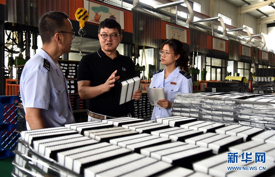 6月15日,稅務(wù)工作人員在河北省邢臺(tái)市威縣一家汽車配件生產(chǎn)企業(yè)調(diào)研稅費(fèi)政策落實(shí)情況。新冠肺炎疫情發(fā)生以來,國家稅務(wù)總局威縣稅務(wù)局實(shí)施“一企一策”精準(zhǔn)輔導(dǎo),組建稅收服務(wù)小分隊(duì),主動(dòng)上門對(duì)接納稅企業(yè),解讀疫情期間稅費(fèi)優(yōu)惠相關(guān)政策,確保政策落實(shí)“一戶不少、應(yīng)享盡享”,為企業(yè)提供助力。新華社記者 朱旭東 攝