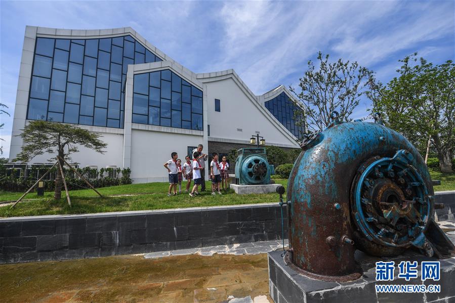 6月17日,洛舍鎮(zhèn)中心學(xué)校的學(xué)生們在聽水情館的水利專家講解軸流泵等水利設(shè)備。新華社記者 徐昱 攝