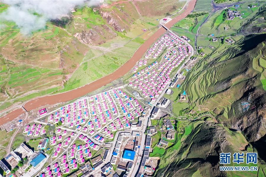 國道317線旁的一處易地扶貧搬遷點(6月14日攝,無人機照片)。新華社記者 田金文 攝