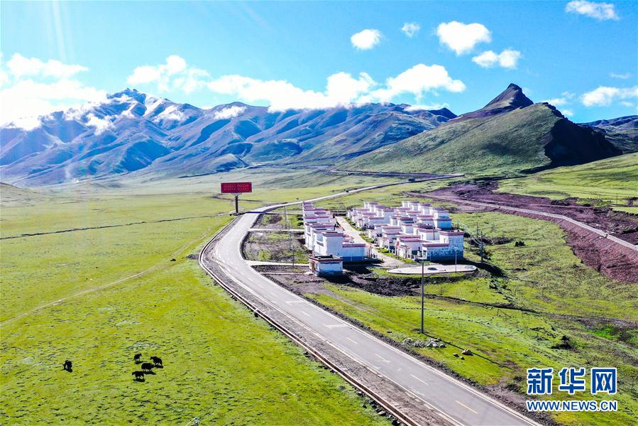 位于丁青縣嘎曲河畔的尺牘鎮(zhèn)易地扶貧搬遷點(6月14日攝,無人機照片)。新華社記者 白少波 攝