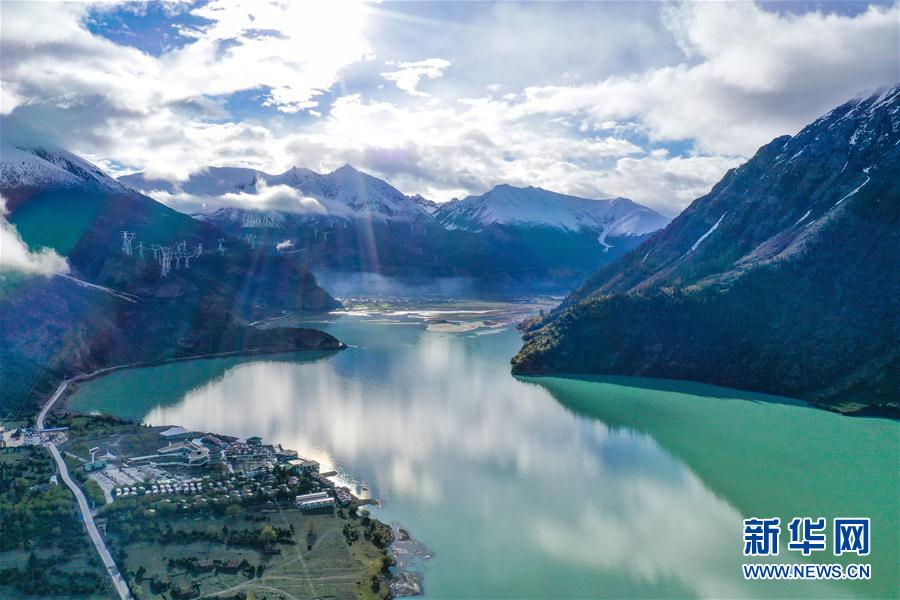 位于昌都市八宿縣境內(nèi)318國道旁的然烏湖(6月7日攝,無人機照片)。新華社記者 田金文 攝