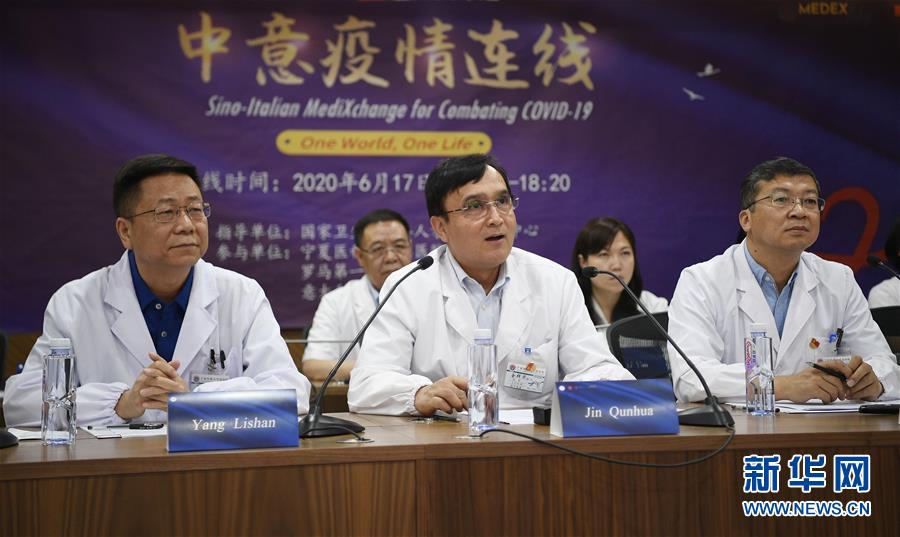 6月17日,寧夏醫(yī)科大學總醫(yī)院專家與羅馬第一公共醫(yī)療衛(wèi)生中心醫(yī)務人員進行視頻交流。當日,寧夏醫(yī)科大學總醫(yī)院專家通過視頻連線,與意大利羅馬第一公共醫(yī)療衛(wèi)生中心一線醫(yī)務人員分享防疫抗疫經(jīng)驗,共克時艱。新華社記者 王鵬 攝