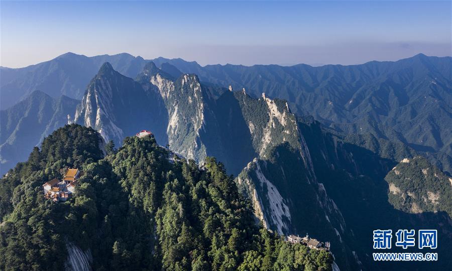 6月18日拍攝的華山西峰(無人機照片)。當日,西岳華山經(jīng)歷連續(xù)三天暴雨后,迎來燦爛的陽光。新華社記者 陶明 攝