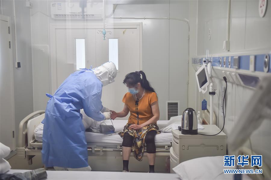 6月19日,在北京地壇醫(yī)院隔離病房內(nèi),護(hù)士給新入住的病人做檢查。新華社記者彭子洋攝