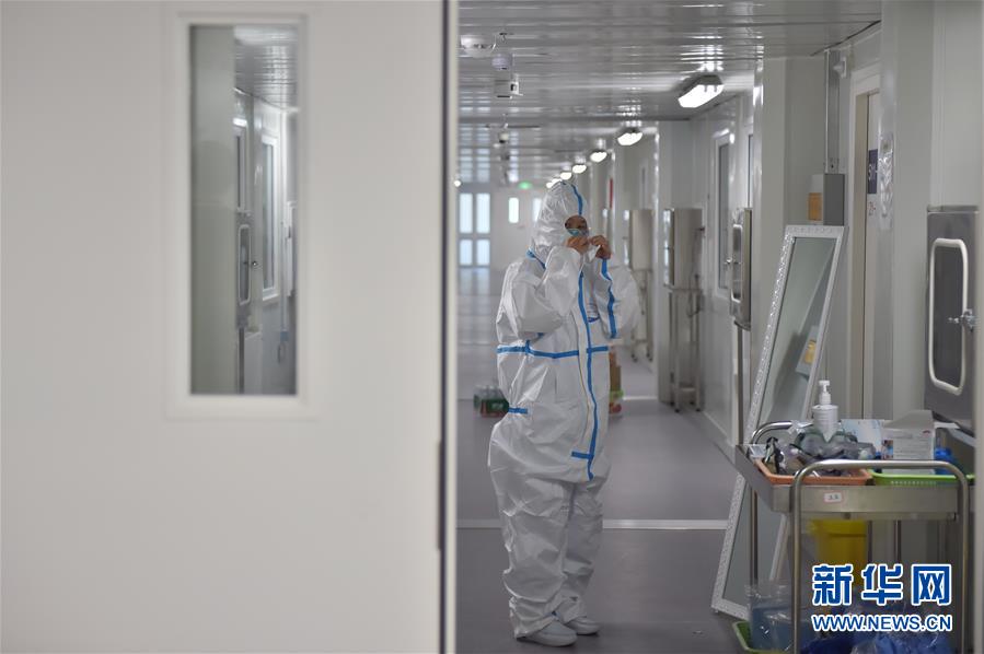 6月19日,在北京地壇醫(yī)院隔離病房外,護(hù)士在穿防護(hù)服。新華社記者彭子洋攝