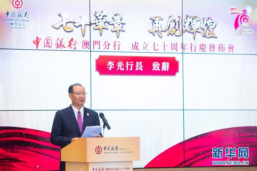 6月21日,中國銀行澳門分行行長李光在直播發(fā)布會上致辭。當(dāng)日,中國銀行澳門分行舉行在線直播發(fā)布會,慶祝中國銀行澳門分行成立70周年。新華社記者張金加攝
