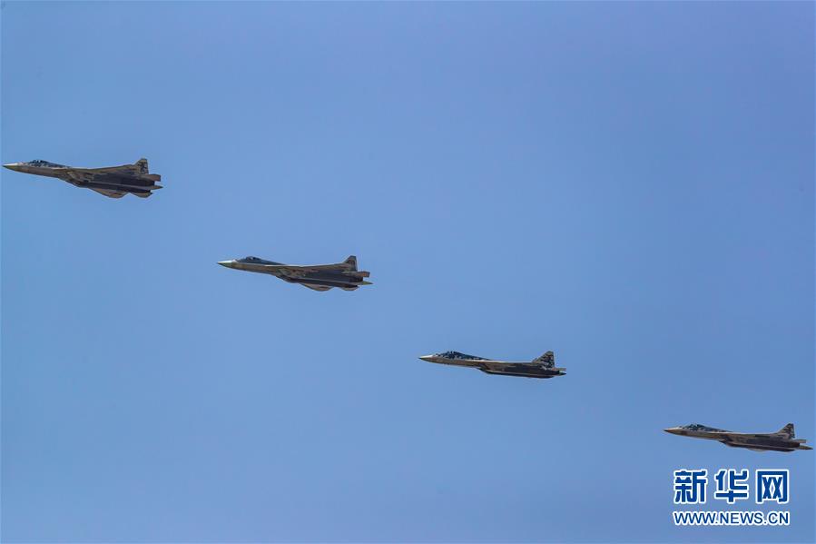 6月20日,在俄羅斯首都莫斯科,蘇-57戰(zhàn)斗機(jī)編隊參加閱兵式彩排。俄羅斯將于6月24日舉行紀(jì)念衛(wèi)國戰(zhàn)爭勝利75周年閱兵式。新華社記者白雪騏攝