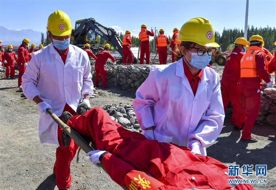 6月22日,應(yīng)急搶險(xiǎn)隊(duì)員參加演練。當(dāng)日,新疆維吾爾自治區(qū)公路管理局組織的2020年國(guó)省干線公路突發(fā)地質(zhì)災(zāi)害應(yīng)急演練在烏魯木齊舉行,演練模擬烏魯木齊市柴窩堡區(qū)域遭受強(qiáng)降雨,誘發(fā)附近水域突發(fā)洪水,公路路基面臨被洪水沖毀的險(xiǎn)情,組織搶險(xiǎn)人員和機(jī)械設(shè)備在指定時(shí)間內(nèi)趕赴受災(zāi)現(xiàn)場(chǎng)實(shí)施應(yīng)急搶險(xiǎn)處置。此次演練將進(jìn)一步增強(qiáng)各相關(guān)部門的防災(zāi)減災(zāi)意識(shí),提高公路應(yīng)急搶險(xiǎn)處突能力。新華社記者王菲攝