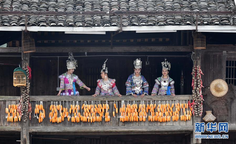 在廣西融水雙龍溝森林旅游度假區(qū)夢嗚苗寨,游客身著苗族服飾拍照(2019年11月24日攝)。近年來,融水打造原生態(tài)苗族文化體驗(yàn)園——夢嗚苗寨,讓搬遷進(jìn)城的貧困戶住進(jìn)復(fù)原建設(shè)的老房子。景區(qū)提供綠化保潔、游樂設(shè)施管理、民族歌舞表演等工作崗位,多渠道增加貧困戶收入。新華社記者黃孝邦攝