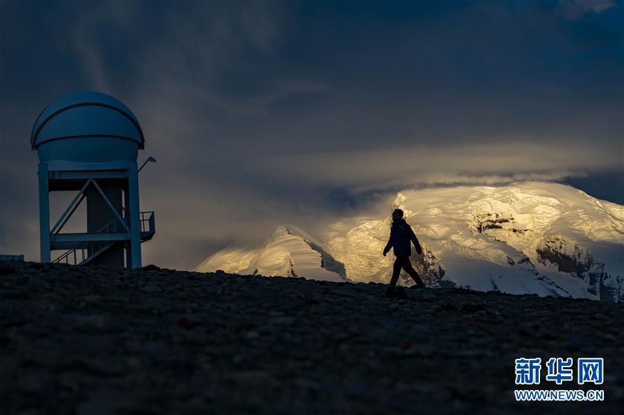 天文科技工作者馮國(guó)杰在中國(guó)科學(xué)院新疆天文臺(tái)慕士塔格觀測(cè)站內(nèi)巡查(6月15日攝)。新華社記者胡虎虎攝