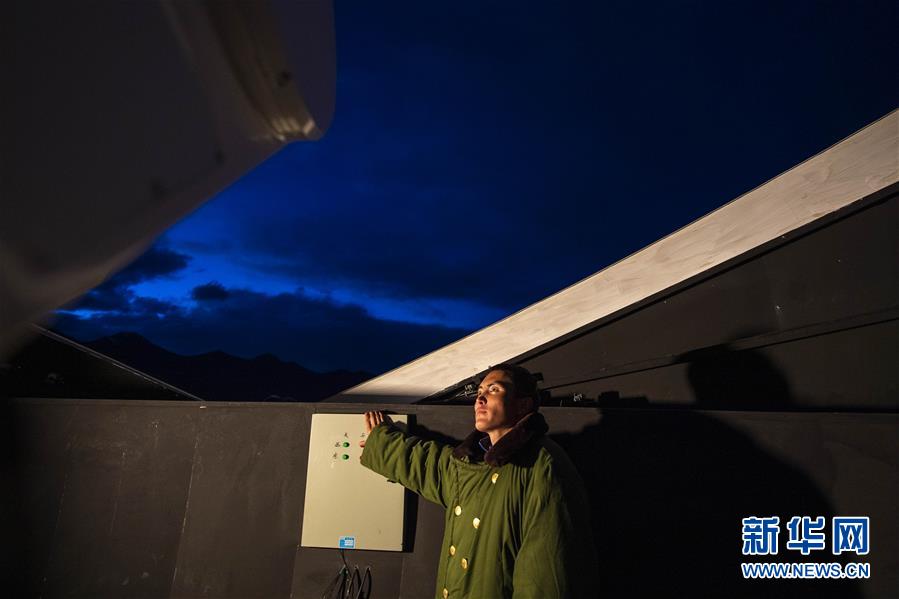 助理觀測(cè)員阿克力·圖拉提在中國(guó)科學(xué)院新疆天文臺(tái)慕士塔格觀測(cè)站值守(6月15日攝)。新華社記者胡虎虎攝