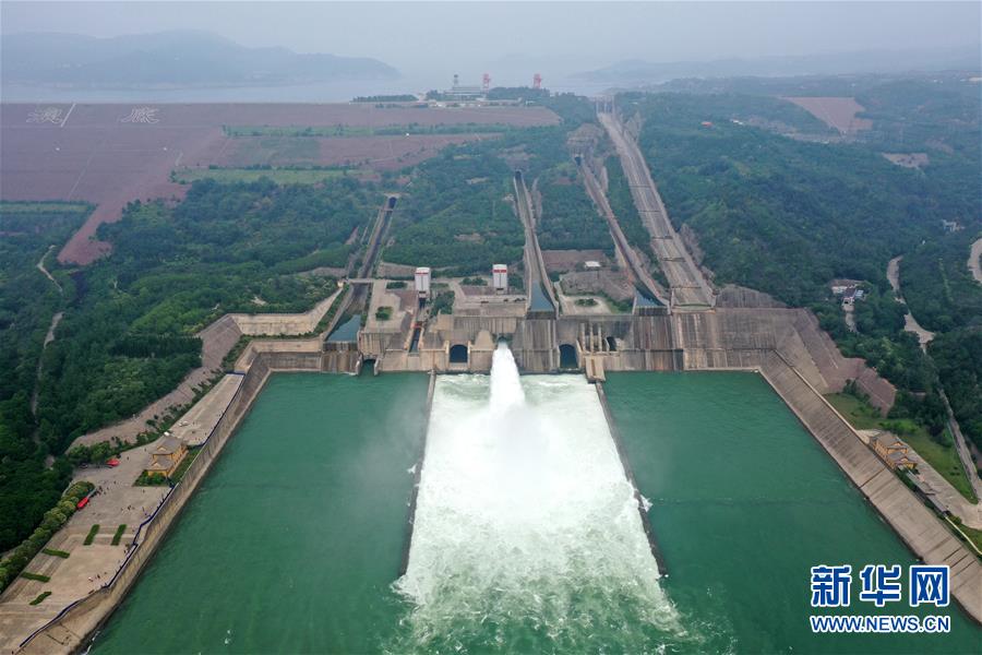 這是6月23日拍攝的黃河小浪底水利樞紐工程(無(wú)人機(jī)照片)。近日,黃河小浪底水利樞紐工程開(kāi)啟洪水調(diào)度運(yùn)用模式,從空中俯瞰,蔚為壯觀。新華社記者郝源攝