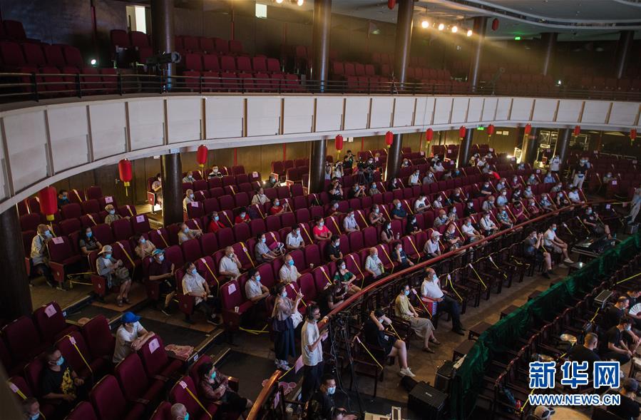 6月26日,市民掃健康碼登記后進入武漢市人民劇院。當(dāng)日,武漢市中心7家劇場恢復(fù)開放,各大文藝院團恢復(fù)線下演出,市民再次坐在劇場內(nèi)觀看“戲碼頭”上群星云集、百戲薈萃。新華社記者 肖藝九 攝
