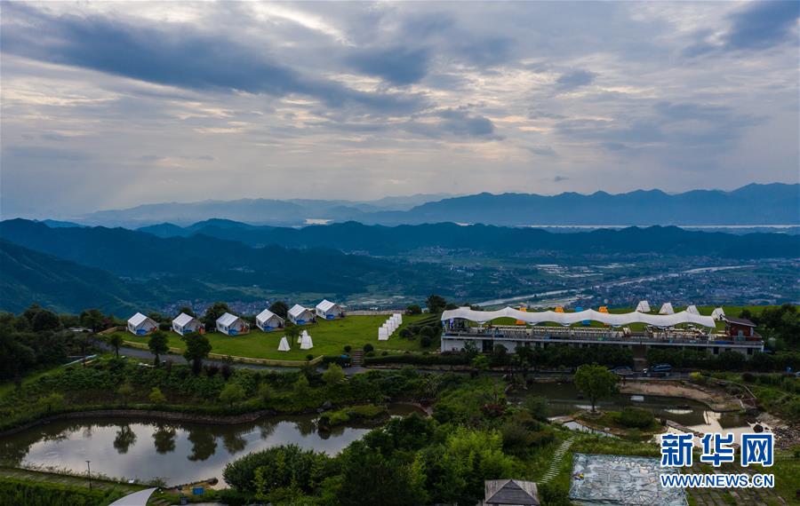 空中俯瞰杭州市富陽(yáng)區(qū)常安鎮(zhèn)永安山頂?shù)膸づ窬频辏?月27日攝,無(wú)人機(jī)照片)。近期,浙江省杭州市富陽(yáng)區(qū)場(chǎng)口鎮(zhèn)、常安鎮(zhèn)和湖源鄉(xiāng)組團(tuán)開(kāi)啟了一場(chǎng)夏季“綠水青山嘉年華”。這幾個(gè)壺源溪流域鄉(xiāng)鎮(zhèn)整合生態(tài)旅游資源,組團(tuán)開(kāi)發(fā)山村旅游項(xiàng)目,游客可以參與壺源溪水上游樂(lè)、露營(yíng)永安山頂、特色農(nóng)產(chǎn)品集市和瓜果節(jié)等特色活動(dòng)。新華社記者徐昱攝