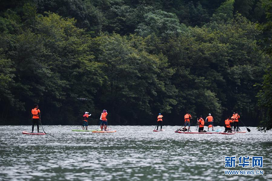 6月28日,水上運(yùn)動(dòng)愛(ài)好者在杭州市富陽(yáng)區(qū)湖源鄉(xiāng)的壺源溪上體驗(yàn)槳板運(yùn)動(dòng)的樂(lè)趣。近期,浙江省杭州市富陽(yáng)區(qū)場(chǎng)口鎮(zhèn)、常安鎮(zhèn)和湖源鄉(xiāng)組團(tuán)開(kāi)啟了一場(chǎng)夏季“綠水青山嘉年華”。這幾個(gè)壺源溪流域鄉(xiāng)鎮(zhèn)整合生態(tài)旅游資源,組團(tuán)開(kāi)發(fā)山村旅游項(xiàng)目,游客可以參與壺源溪水上游樂(lè)、露營(yíng)永安山頂、特色農(nóng)產(chǎn)品集市和瓜果節(jié)等特色活動(dòng)。新華社記者徐昱攝