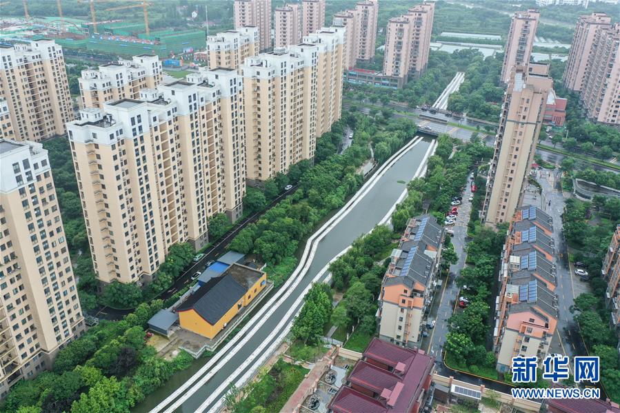 6月29日在吳興區(qū)湖東街道拍攝的“水上稻田”(無人機照片)。今年以來,浙江湖州吳興區(qū)湖東街道開始在轄區(qū)河道大規(guī)模推廣“水上稻田”新型農(nóng)業(yè)項目,利用浮島進行特種水稻種植,既能凈化水體,又能產(chǎn)出生態(tài)稻谷?!八系咎铩鳖A(yù)計在11月實現(xiàn)收割。新華社記者翁忻旸攝