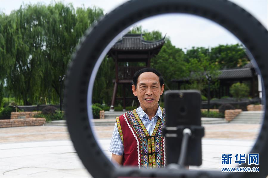 6月29日,70歲的畬族老黨員藍(lán)練根在新登鎮(zhèn)雙江村的畬族文化廣場(chǎng)直播,向網(wǎng)友介紹“畬族村寨”雙江村的風(fēng)土人情,推介家鄉(xiāng)的文旅產(chǎn)業(yè)。近日,浙江省杭州市富陽區(qū)新登鎮(zhèn)來自不同領(lǐng)域、有著不同身份的基層黨員們紛紛化身網(wǎng)絡(luò)“主播”,借助抖音、朋友圈等網(wǎng)絡(luò)載體,傾情推介家鄉(xiāng)的山鄉(xiāng)風(fēng)貌、山鄉(xiāng)味道、山鄉(xiāng)民俗、山鄉(xiāng)風(fēng)情。新華社記者徐昱攝