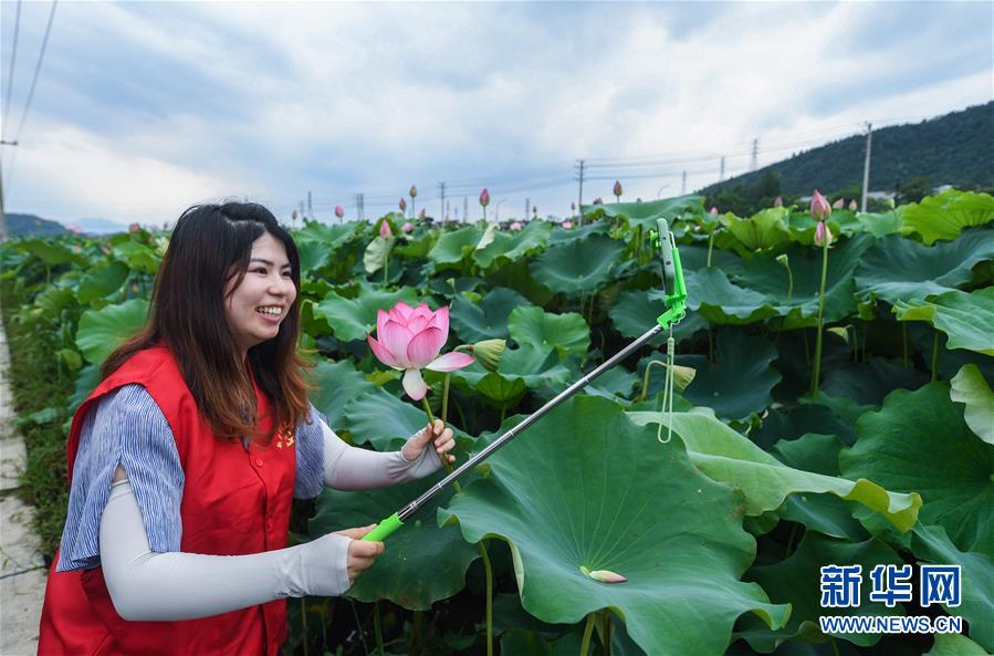 6月29日,90后年輕黨員諸葛海洋在新登鎮(zhèn)上山村的百畝荷塘進行網(wǎng)絡推介,助力鄉(xiāng)村旅游。近日,浙江省杭州市富陽區(qū)新登鎮(zhèn)來自不同領(lǐng)域、有著不同身份的基層黨員們紛紛化身網(wǎng)絡“主播”,借助抖音、朋友圈等網(wǎng)絡載體,傾情推介家鄉(xiāng)的山鄉(xiāng)風貌、山鄉(xiāng)味道、山鄉(xiāng)民俗、山鄉(xiāng)風情。新華社記者徐昱攝
