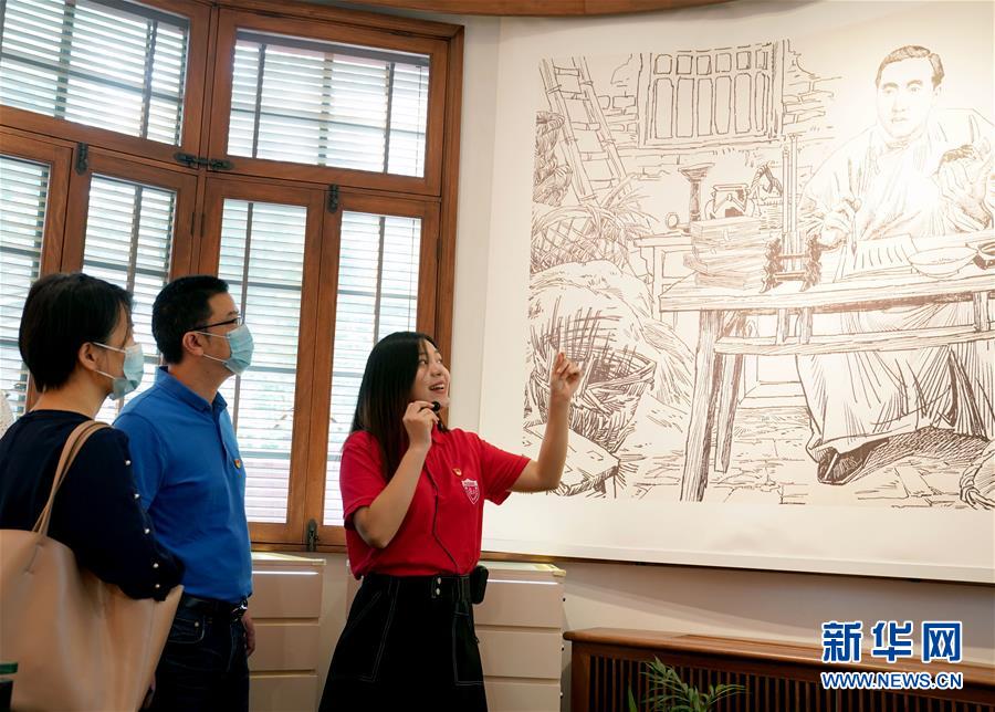 6月30日,復旦大學《共產(chǎn)黨宣言》展示館黨員志愿服務隊隊員、復旦大學馬克思主義學院博士生陸婷婷(右一)在為觀眾講解。陳望道是《共產(chǎn)黨宣言》首個中文全譯本的翻譯者,也是新中國成立后復旦大學的第一任校長。2018年5月,復旦大學將陳望道故居改造為《共產(chǎn)黨宣言》展示館,該校一批青年教師和學生組建黨員志愿服務隊,面向廣大師生和社會各界開展宣講活動。復旦大學《共產(chǎn)黨宣言》展示館黨員志愿服務隊名為“星火”,由該校青年教師、博士生、碩士生黨員組成。兩年多時間里,志愿服務隊共服務學校及社會各界參觀者近5萬人次,年均講解700多場。新華社記者劉穎攝