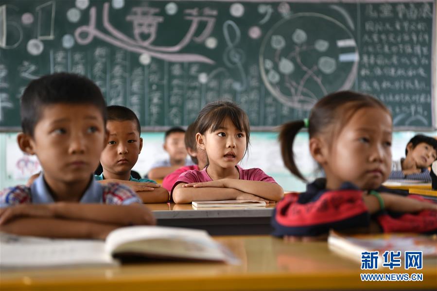 寧夏銀川市永寧縣閩寧鎮(zhèn)原隆村原隆小學(xué),一年級(jí)的孩子們?cè)谏险n(2019年9月3日攝)。新華社記者王鵬攝