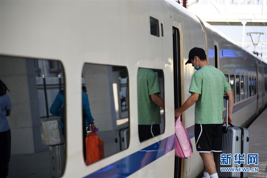 7月1日,旅客在山東章丘站上車。當(dāng)日,2020年全國鐵路暑運拉開帷幕。新華社記者王凱攝