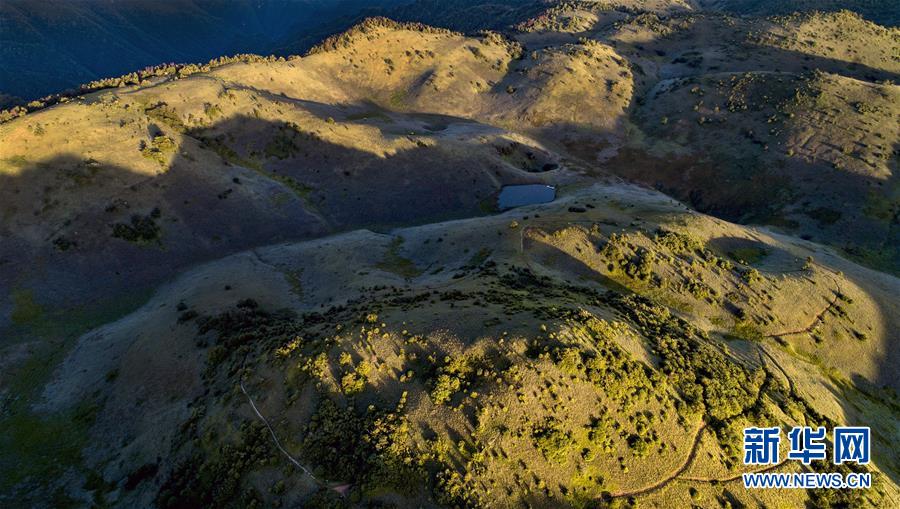 6月30日,朝霞照耀下的神田草甸(無人機照片)。位于陜西省安康市嵐皋縣與重慶市城口縣交界處大巴山神田主脊北坡的神田草甸,面積超過1.1萬畝。夏日的朝霞中,起伏的草甸仿佛一塊寬大無邊的綠色地毯,鑲嵌在大巴山上,如詩如畫。新華社發(fā)(邱仕君攝)